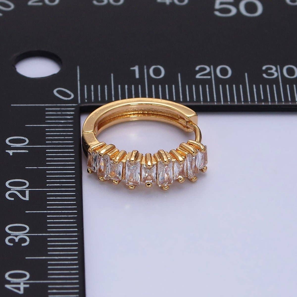 16K Gold Filled Clear Baguette CZ Lined 19mm Hoop Earrings | AB1459 AB1460