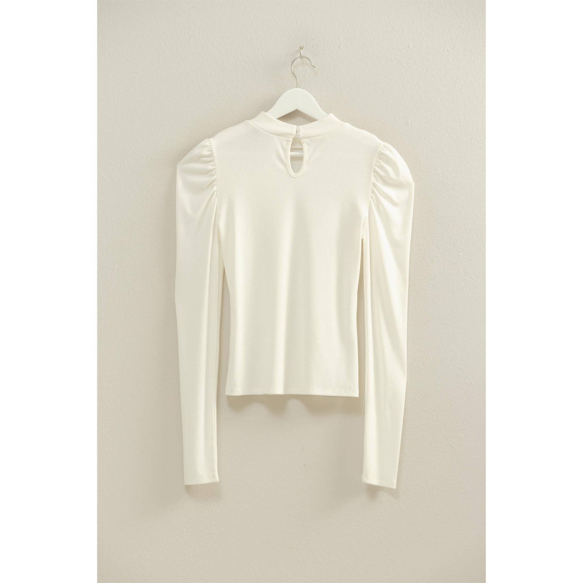 Elegant Puff-Sleeve Fitted Top With Keyhole Back