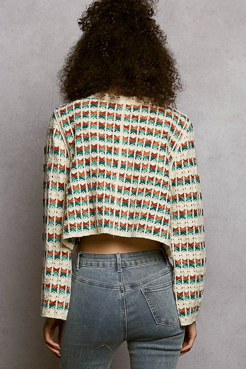 Scalloped Crochet V-Neck Long Sleeve Cardigan Top